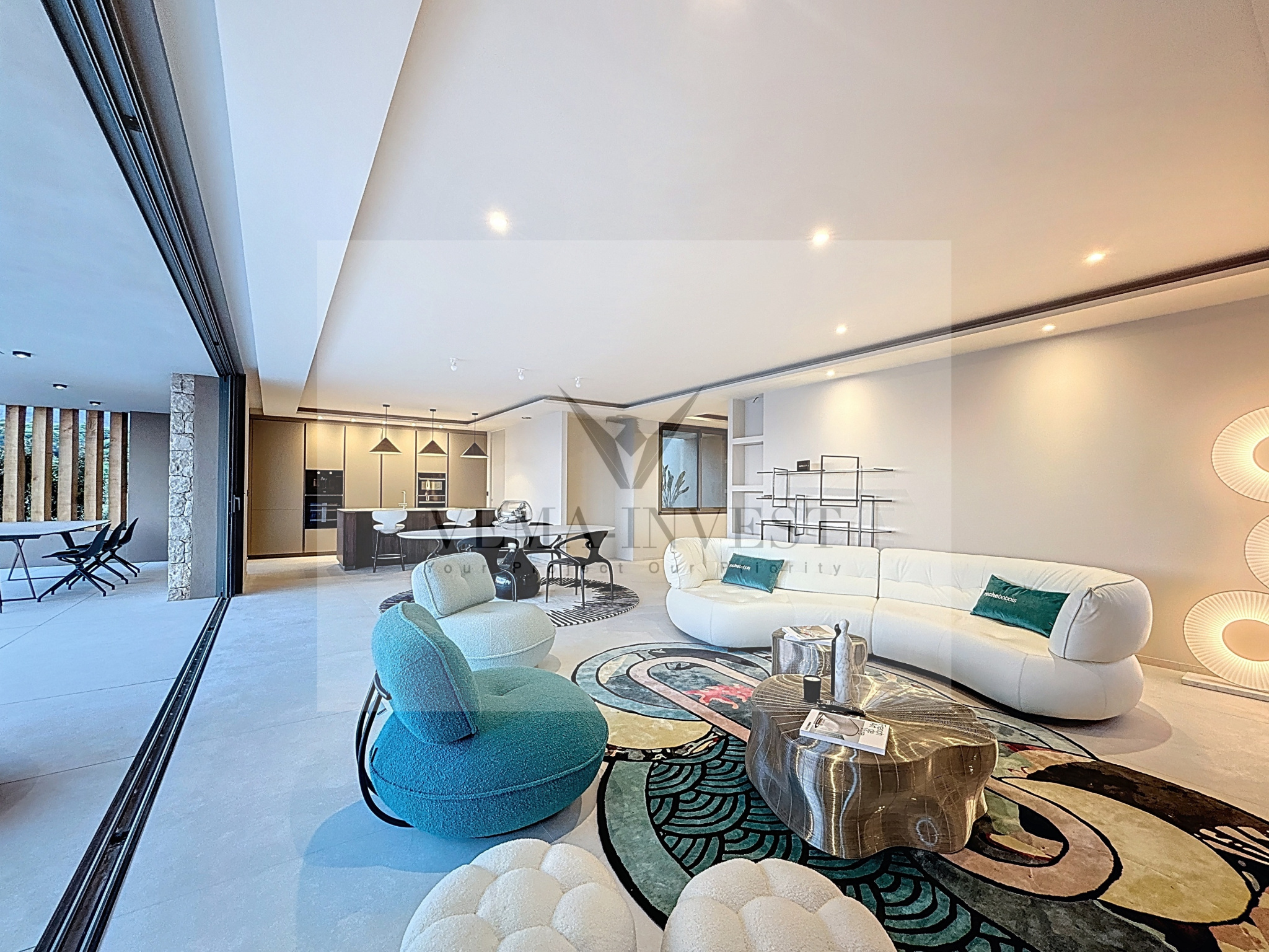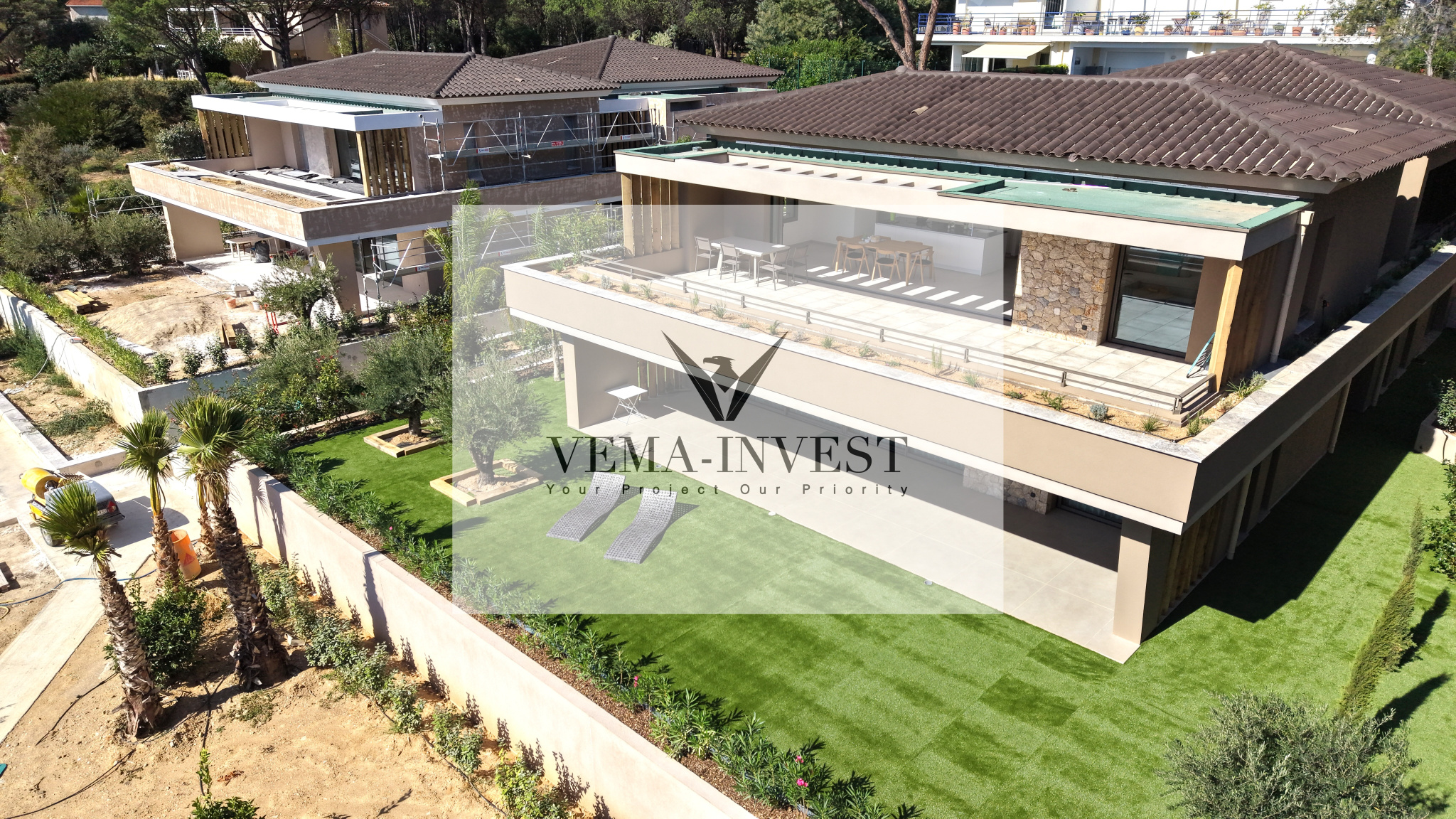 Dans une superbe résidence de standing, à deux pas de la mer avec vue en direction du village de Saint-Tropez. Appartement de 5 pièces princpales en premier et dernier étage offrant 148 m² habitables ainsi qu'une terrasse de 58 m² environ. Prestations et fintions haut de gamme. Cuisine équipée et un garage fermé de 92 m² en sous sol. Tout confort, secteur calme très recherché à proximité du centre ville. Liv T3 2025. Frs not réds. Dossier sur demande.