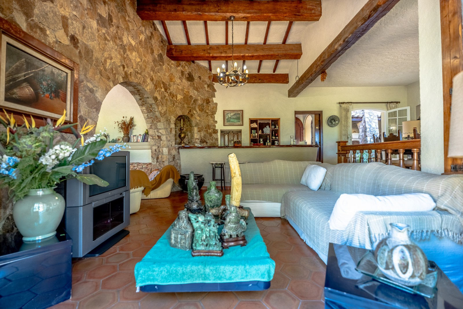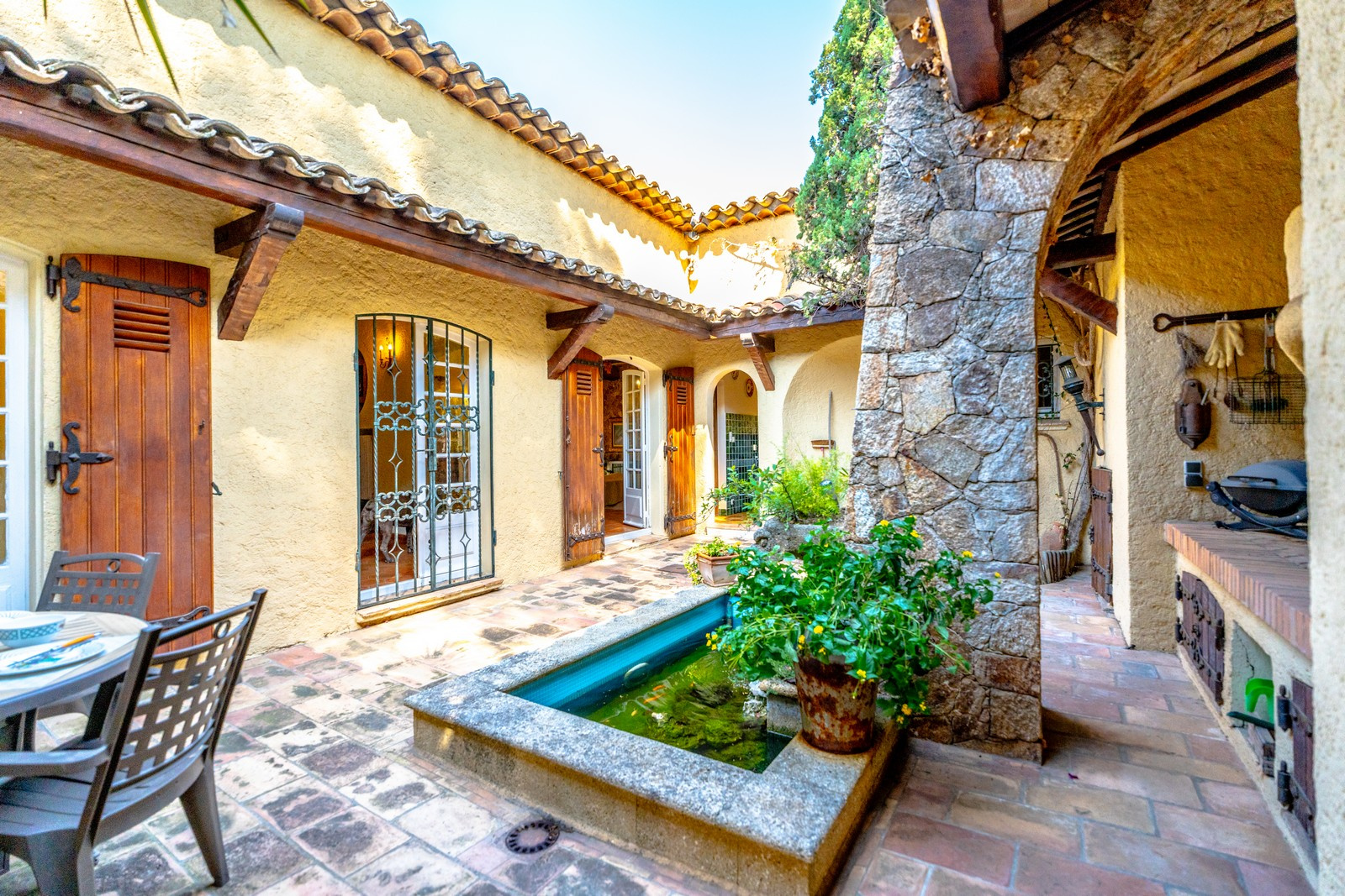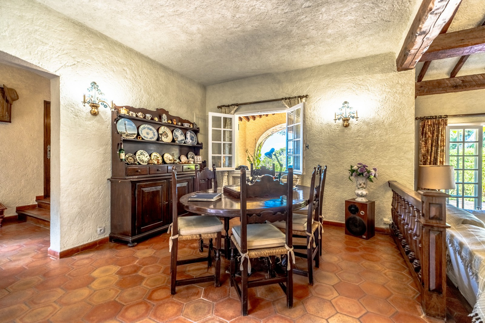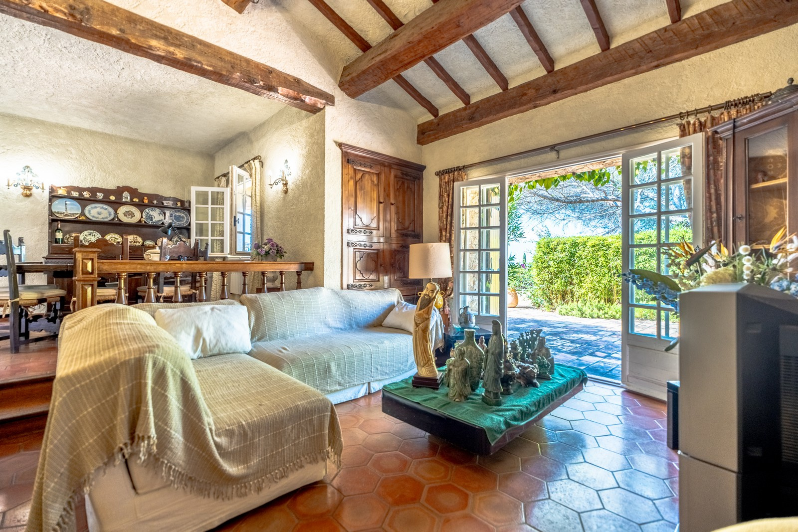 Superbe propriété. Magnifique Villa provençale offrant 275 m² habitables ainsi que de nombreuses annexes, abri voiture maçonné de 50 m², grand garage, caves, parkings … sise sur un beau terrain de 2.293 m². La villa offre en outre une superbe vue mer ainsi qu’une exposition optimale Sud-Ouest. Les prestations, très provençales ont été réalisées sur mesure avec beaucoup d’attention et des matériaux nobles traditionnels. L’habitation est scindée en deux parties distinctes indépendantes permettant d’y vivre en famille ou de recevoir avec maximum de confort, à, raison de 185 m² habitables pour la partie haute et 90 m² habitables pour la partie basse de la villa. Le bien est tout à fait unique dans son agencement, notamment grâce au superbe patio avec bassin et barbecue, aspect architectural rare. La partie haute est composée d’un hall d’entrée, d’un séjour double (salon, séjour coin cheminée), d’une cuisine traditionnelle avec buanderie et office séparé, de 4 chambres disposant toutes de salles de bains privatives avec wc dont une superbe suite avec dressing, placards intégrés, wc invités, patio… La partie basse est composée d’un séjour, d’une cuisine américaine avec arrière-cuisine, de deux chambres avec salles de bains privatives et wc. La vue mer, magnifique, est omniprésente et les espaces extérieurs très agréables avec de très grandes terrasses et de superbes espaces verts paysagés. L’ensoleillement est optimal du fait de l’exposition Sud-Ouest. Le centre-ville des Issambres est accessible très rapidement (1600 mètres) et le quartier est très calme la propriété étant sise en impasse. Actuellement dotée d’un petit bassin, il est possible de réaliser une piscine plus grande si souhaité, point sur lequel nous pourrons vous assister au besoin. A visiter pour mieux apprécier ce superbe bien et son emplacement de premier ordre.