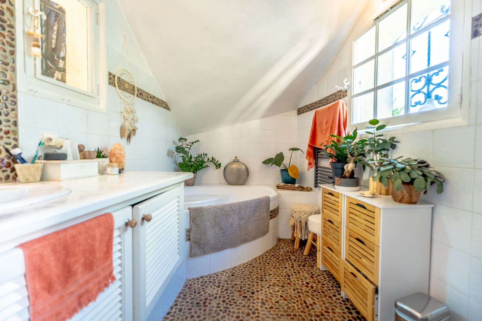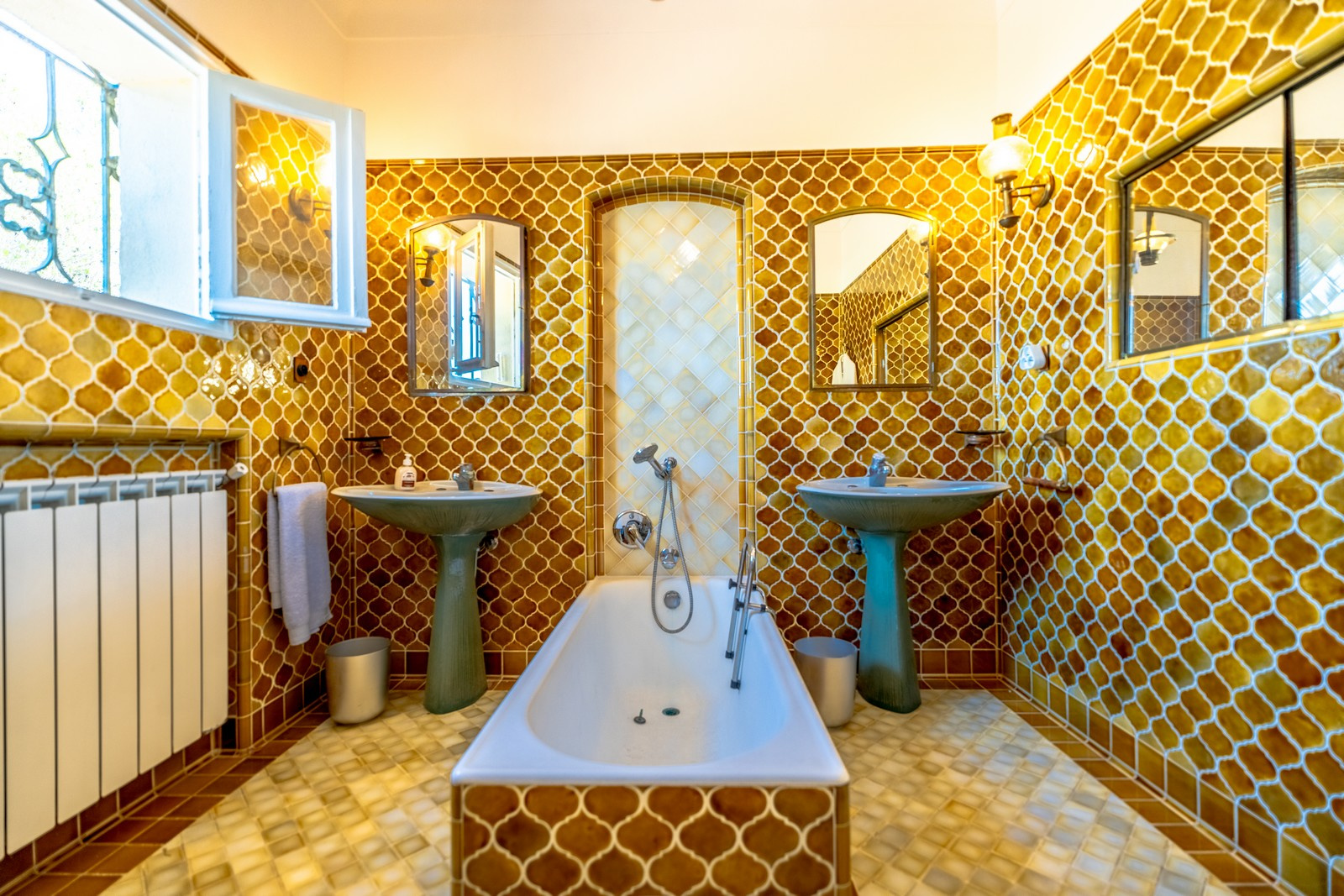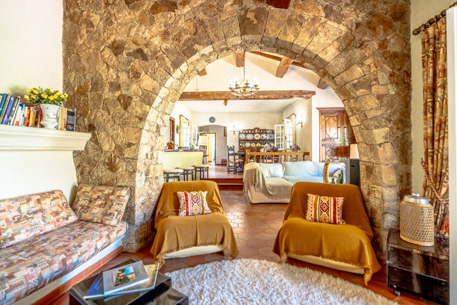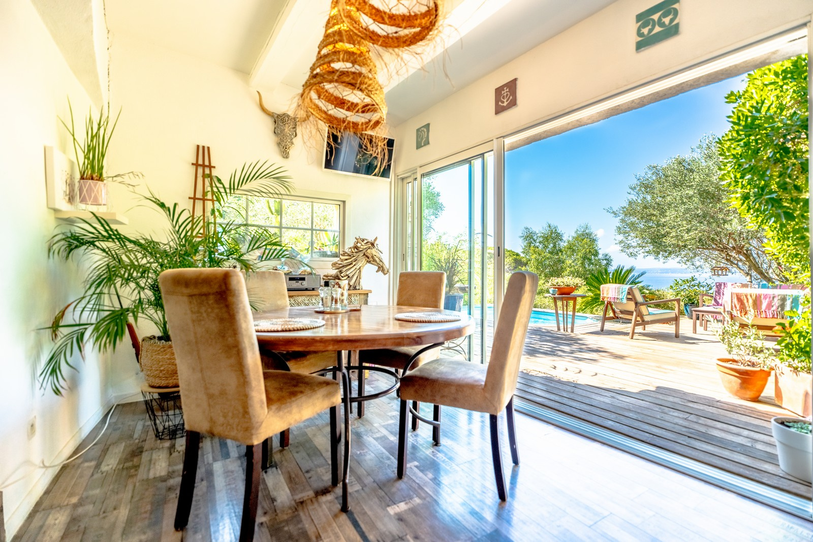 Superbe propriété. Magnifique Villa provençale offrant 275 m² habitables ainsi que de nombreuses annexes, abri voiture maçonné de 50 m², grand garage, caves, parkings … sise sur un beau terrain de 2.293 m². La villa offre en outre une superbe vue mer ainsi qu’une exposition optimale Sud-Ouest. Les prestations, très provençales ont été réalisées sur mesure avec beaucoup d’attention et des matériaux nobles traditionnels. L’habitation est scindée en deux parties distinctes indépendantes permettant d’y vivre en famille ou de recevoir avec maximum de confort, à, raison de 185 m² habitables pour la partie haute et 90 m² habitables pour la partie basse de la villa. Le bien est tout à fait unique dans son agencement, notamment grâce au superbe patio avec bassin et barbecue, aspect architectural rare. La partie haute est composée d’un hall d’entrée, d’un séjour double (salon, séjour coin cheminée), d’une cuisine traditionnelle avec buanderie et office séparé, de 4 chambres disposant toutes de salles de bains privatives avec wc dont une superbe suite avec dressing, placards intégrés, wc invités, patio… La partie basse est composée d’un séjour, d’une cuisine américaine avec arrière-cuisine, de deux chambres avec salles de bains privatives et wc. La vue mer, magnifique, est omniprésente et les espaces extérieurs très agréables avec de très grandes terrasses et de superbes espaces verts paysagés. L’ensoleillement est optimal du fait de l’exposition Sud-Ouest. Le centre-ville des Issambres est accessible très rapidement (1600 mètres) et le quartier est très calme la propriété étant sise en impasse. Actuellement dotée d’un petit bassin, il est possible de réaliser une piscine plus grande si souhaité, point sur lequel nous pourrons vous assister au besoin. A visiter pour mieux apprécier ce superbe bien et son emplacement de premier ordre.