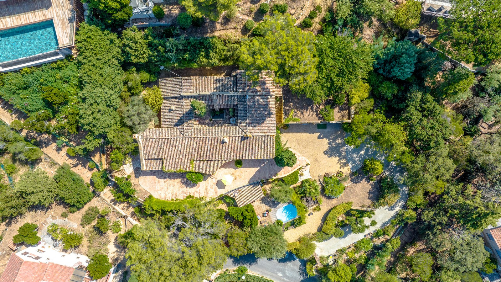 Superbe propriété. Magnifique Villa provençale offrant 275 m² habitables ainsi que de nombreuses annexes, abri voiture maçonné de 50 m², grand garage, caves, parkings … sise sur un beau terrain de 2.293 m². La villa offre en outre une superbe vue mer ainsi qu’une exposition optimale Sud-Ouest. Les prestations, très provençales ont été réalisées sur mesure avec beaucoup d’attention et des matériaux nobles traditionnels. L’habitation est scindée en deux parties distinctes indépendantes permettant d’y vivre en famille ou de recevoir avec maximum de confort, à, raison de 185 m² habitables pour la partie haute et 90 m² habitables pour la partie basse de la villa. Le bien est tout à fait unique dans son agencement, notamment grâce au superbe patio avec bassin et barbecue, aspect architectural rare. La partie haute est composée d’un hall d’entrée, d’un séjour double (salon, séjour coin cheminée), d’une cuisine traditionnelle avec buanderie et office séparé, de 4 chambres disposant toutes de salles de bains privatives avec wc dont une superbe suite avec dressing, placards intégrés, wc invités, patio… La partie basse est composée d’un séjour, d’une cuisine américaine avec arrière-cuisine, de deux chambres avec salles de bains privatives et wc. La vue mer, magnifique, est omniprésente et les espaces extérieurs très agréables avec de très grandes terrasses et de superbes espaces verts paysagés. L’ensoleillement est optimal du fait de l’exposition Sud-Ouest. Le centre-ville des Issambres est accessible très rapidement (1600 mètres) et le quartier est très calme la propriété étant sise en impasse. Actuellement dotée d’un petit bassin, il est possible de réaliser une piscine plus grande si souhaité, point sur lequel nous pourrons vous assister au besoin. A visiter pour mieux apprécier ce superbe bien et son emplacement de premier ordre.